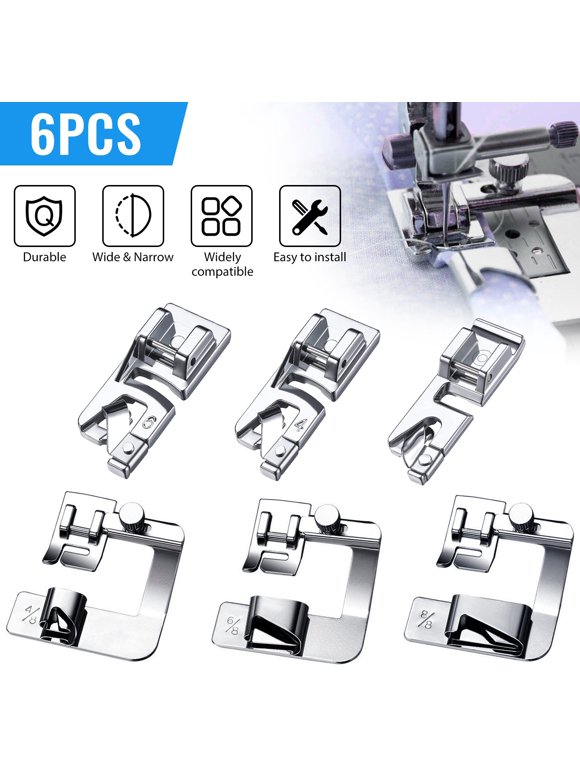 6 Pcs Rolled Hem Presser Foot Hemming Foot Kit For Sewing Rolled Hemmer Presser Foot For Singer Brother Janome Home Multifunctional Sewing Machine